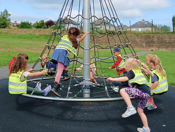 • Walking bus: Children are registered, put on their fluorescent tabards, and walk with staff to the community centre.